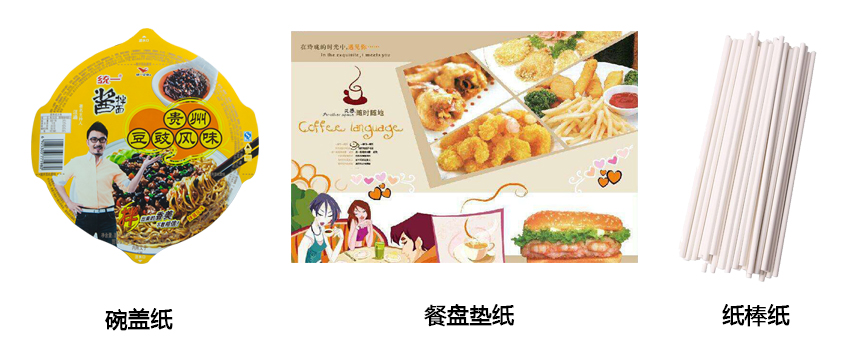 主要用途:多用于制作食品袋、餐盘垫纸、干燥剂袋、酒精干湿包等,覆膜和铝箔后可作为桶装大碗面碗盖使用。